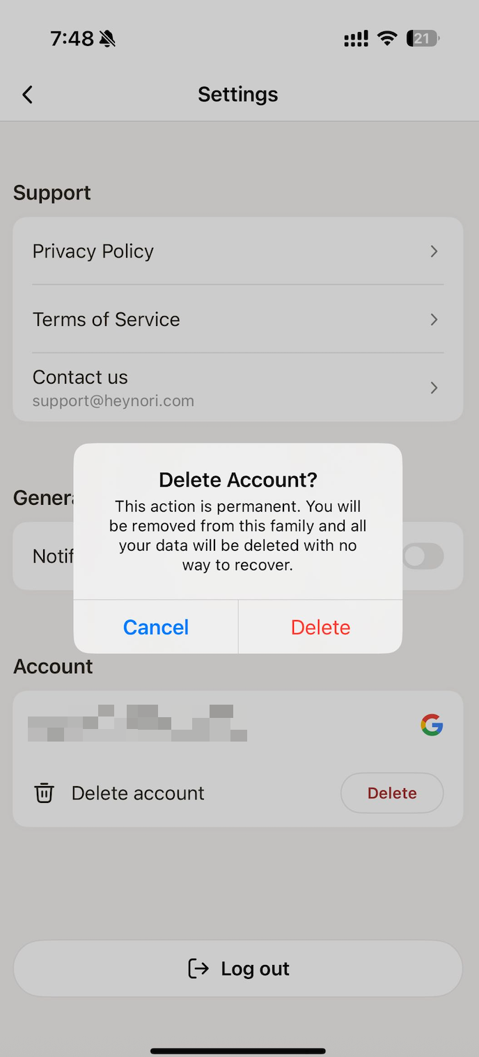 Deleting your Nori account is permanent. Once completed:
