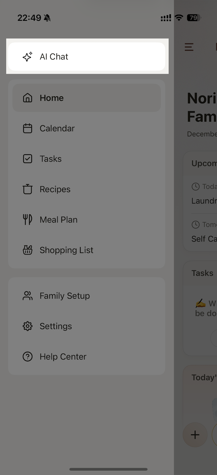 2. Tap the hamburger menu and select AI Chat.