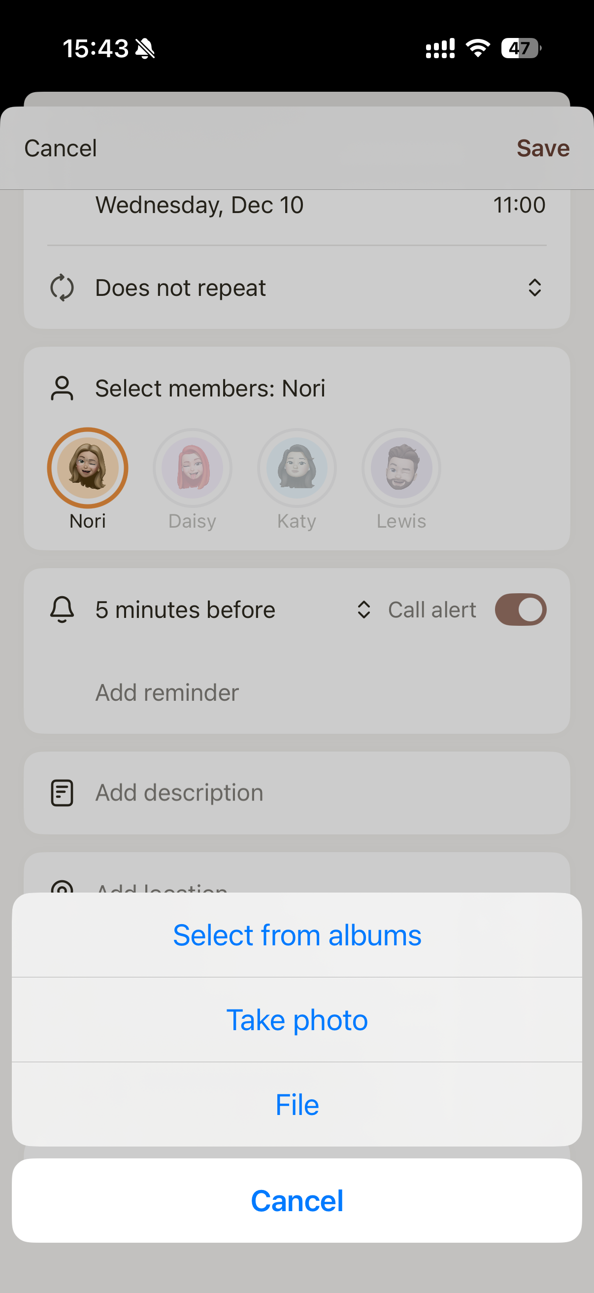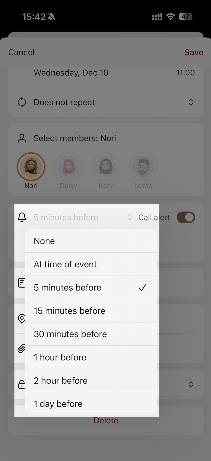 - Assign the event to one or more family members.