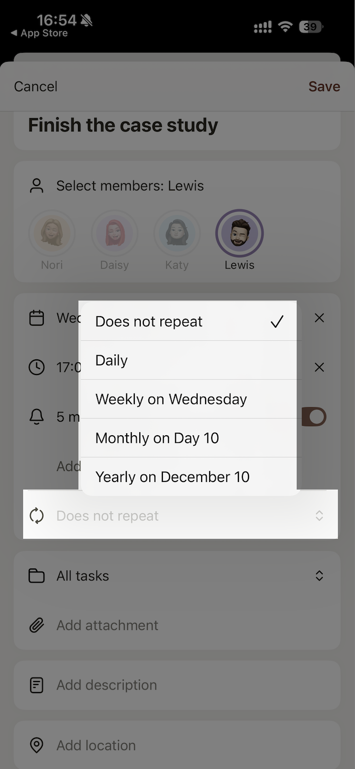 Members: Assign the task to one or more family members. You can also choose not to assign it to anyone.