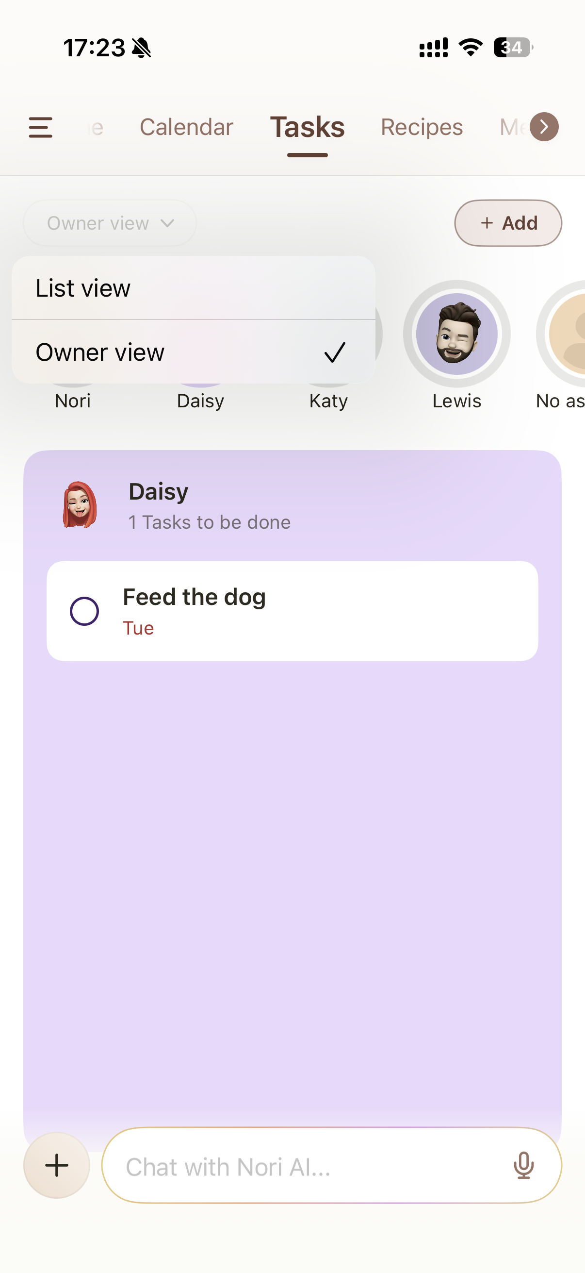 - Tasks are visible to all family members who have a Nori account.