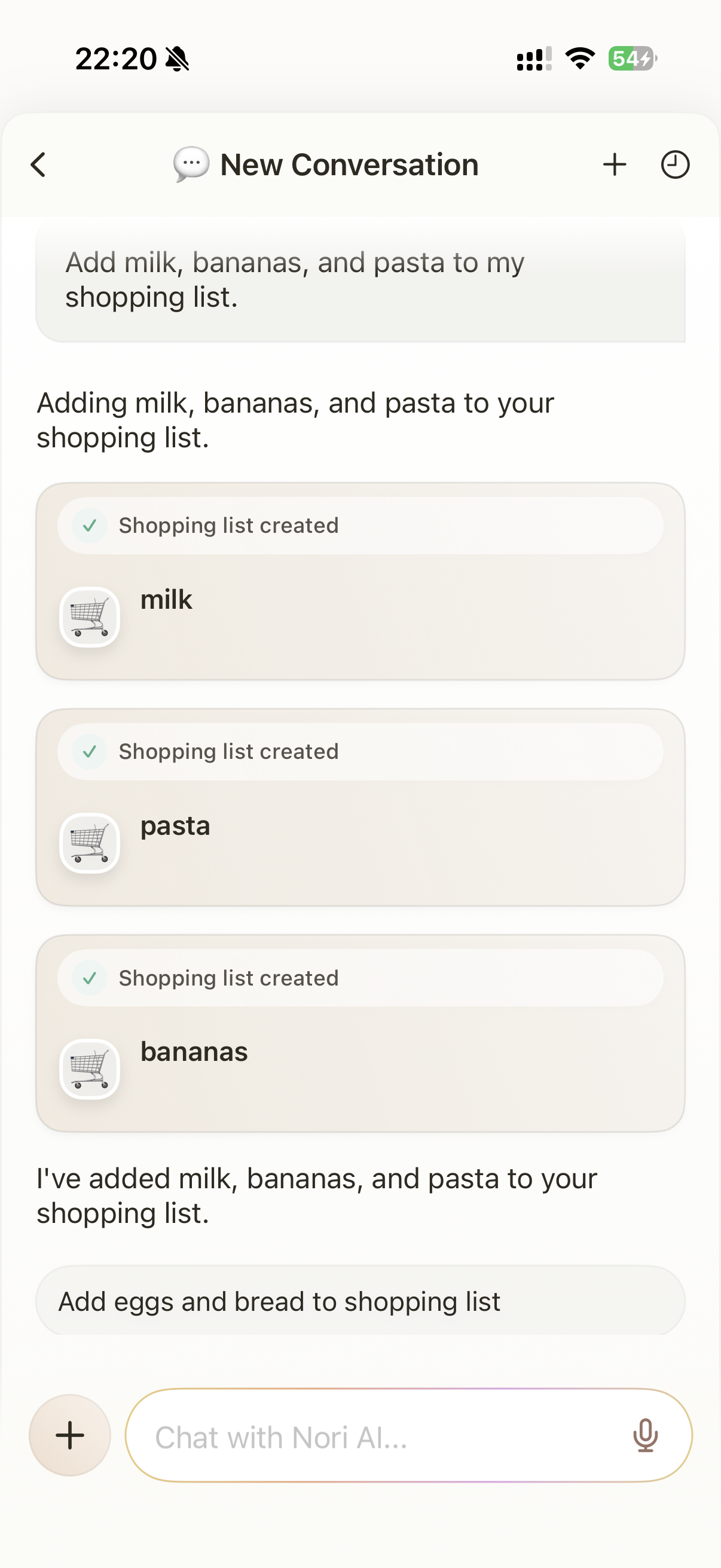 You can manage your shopping list through Nori AI Chat for hands-free convenience. Here are two common examples: