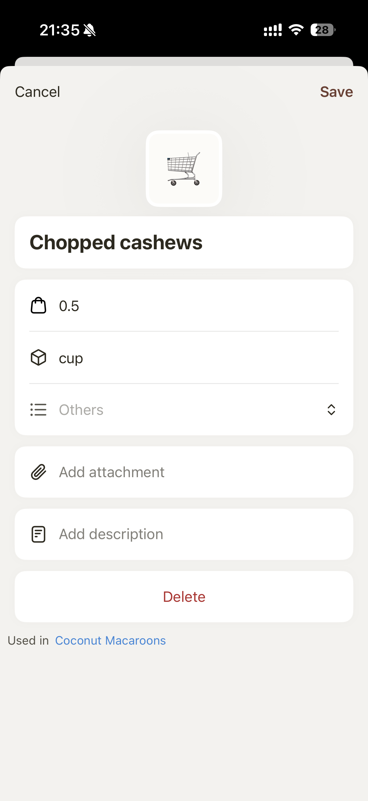 Tap any item to edit its details. You can modify: