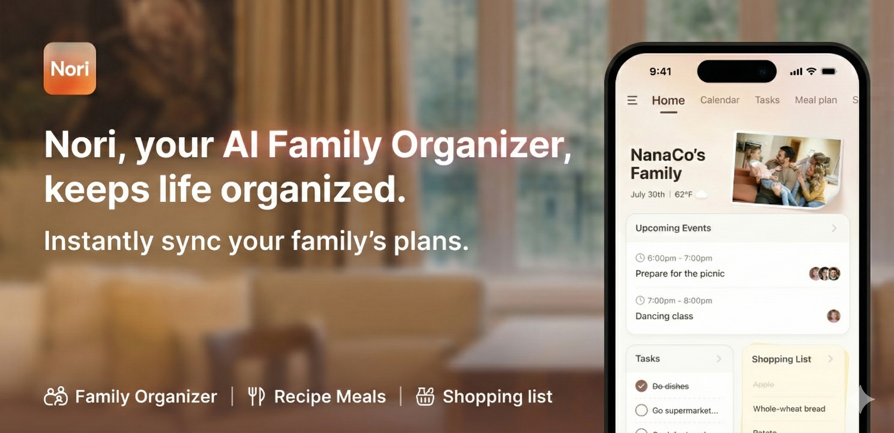 Nori is your family’s all-in-one organizer, powered by AI. It keeps schedules, tasks, meals, and everyday routines running smoothly across all your devices. Whether you’re coordinating school pickups, planning dinner, or trying to reduce the endless mental load, Nori helps you stay organized with less effort.